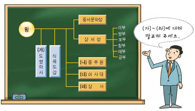 ㄴ. (나)는 군사 기밀, 왕명 전달, 궁궐 숙위를 담당하였습니다. ㄷ. (다)는 관리를 감찰하고 풍기를 단속하였습니다. ㄹ. (라)는 권력의 독점과 부정을 방지하는 역할을 하였습니다. |