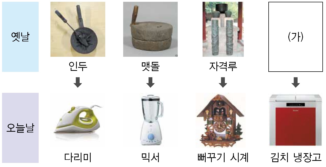 20. 다음은 생활 도구의 변화를 정리한 것이다. (가)에 들어갈 수 있는 사진으로 적절한 것은? [2점]