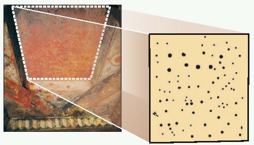 평양 진파리 4호분 천장 그림과 별자리 위 천문도에는 28개의 별자리와 북두칠성 등이 그려져 있다. 북두칠성은 크게 그리고, 다른 별들은 밝기에 따라서 차등을 두어 그렸다. 이와 같은 천문도는 |