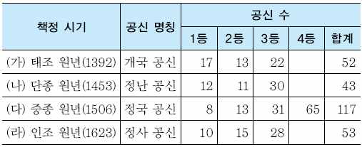 24. 다음은 조선 시대 공신 수에 관련된 자료이다. 이를 토대로 옳게 추론한 것을 <보기>에서 모두 고른 것은? [2점]