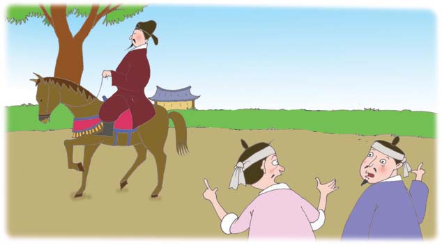 13. 역사 만화의 한 장면이다. 그림 속에서 말을 타고 있는 인물이 나오는 또 다른 장면으로 적절하지 않은 것은? [2점]