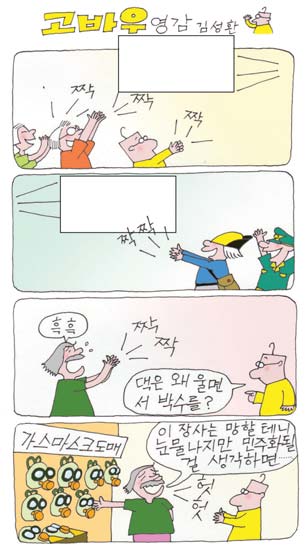 49. (가)의 결과로 유추해 볼 수 있는 (나) 만평의 빈칸에 들어갈 문구로 가장 적절한 것은? [2점]