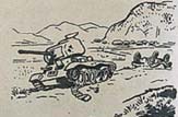 | 마을 밖 큰 길가에 부서진 탕크가 쓸어져 있읍니다.
