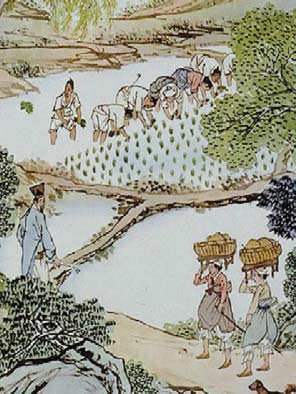 남쪽 바람 때맞추어 보리 추수 재촉하니 보리밭 누른빛이 밤사이 나겠구나. 문 앞에 터를 닦고 보리타작 하오리다. …… 목동은 놀지 말고 …… 뒷논은 뉘 심고 – 농가월령가 5월령 – |