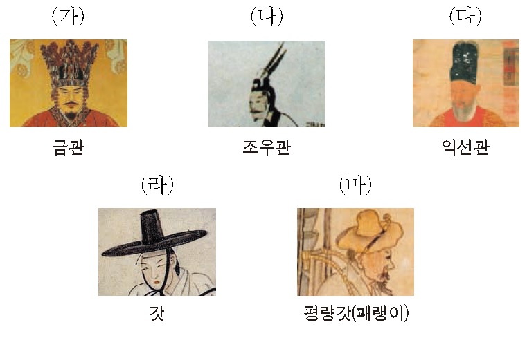 ② (나)-2개의 새 깃털을 꽂은 고구려의 모자이다.