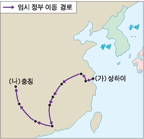 34. (가), (나) 지역에서 대한민국 임시 정부가 전개한 활동으로 옳은 것을 <보기>에서 고른 것은? [3점]