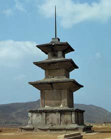 불교가 전래된 초기에 만들어진 탑은 목탑이었다. 불교가 토착화되면서 7세기 백제에서는 목탑의 형식을 본 떠 화강암으로 탑을 만들었다. 한편 신라의 석탑은 전탑을 모방하는 데서 출발하였다. (가)은(는) 안산암을 작은 벽돌처럼 다듬어서 쌓아 올린 석탑으로 현존하는 신라 석탑 가운데 가장 오래된 것이다. |