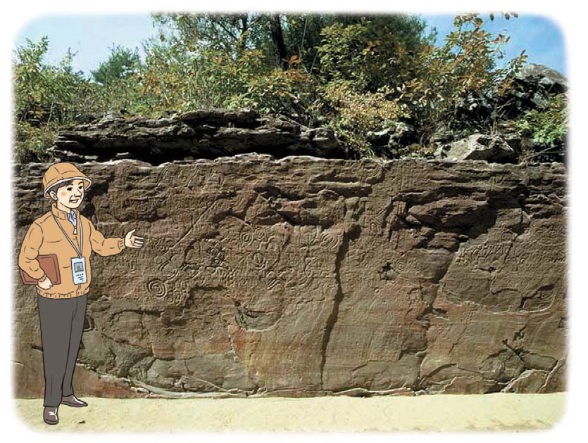 ④ 여러 가지 문양의 암각화와 신라 때의 명문이 함께 새겨져 있습니다.