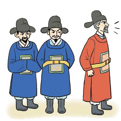 | “조선책략을 읽어보니 러시아의 남하를 막기 위해서는 미국과 수교해야 할 것 같습니다.” | “모르던 나라를 타인의 권유로 끌어들여서는 안 됩니다. 미국도 같은 오랑캐일 뿐입니다.” |