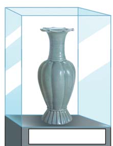 청자 참외 모양 병 A: 당시 사람들은 이러한 도자기의 푸른빛을 비색이라고 했습니다. |
