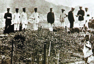 A: 이것은 조선 총독부가 토지를 조사하고 있는 사진이야. |