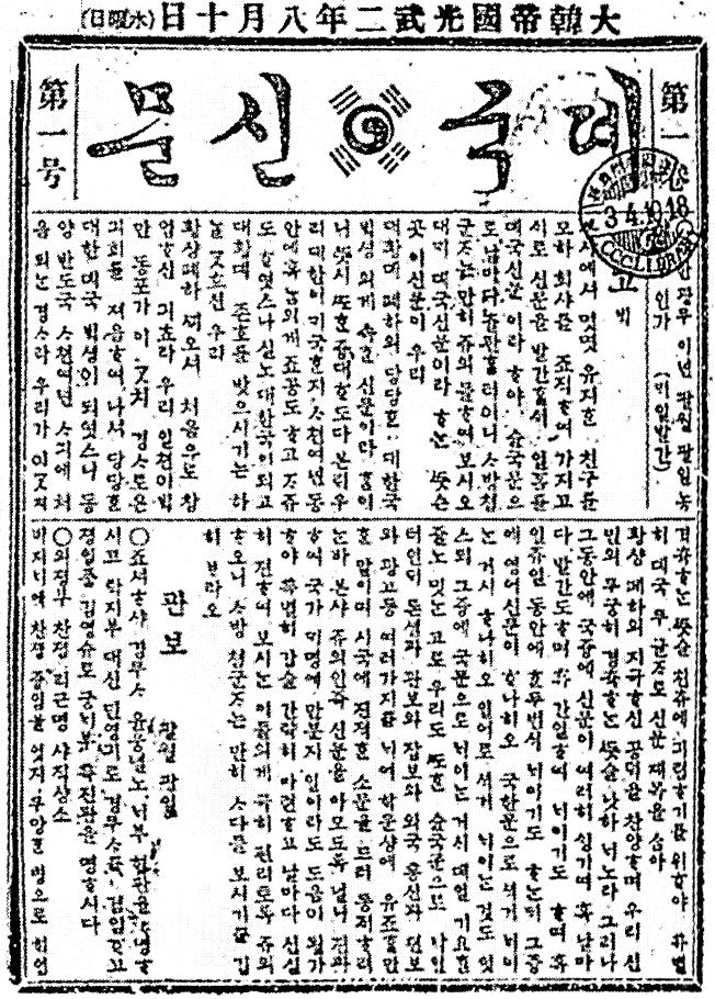 농상공부로부터 신문 간행을 허가받아 이종일이 순 한글로 간행하였으며 서민층과 부녀자들 사이에 독자가 많았다. 이 신문은 어용 단체인 일진회에 대해 통렬히 논박하는 등 민족지로서의 면모를 보여주었으며, 신문지법의 제정으로 일제의 탄압이 가중되어 여러 차례 정간을 당하면서도 민중 계몽과 자주 독립 의식을 고취하는 데 힘썼다. |