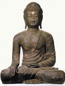| 경상북도 영주에 있는 부석사는 의상이 창건한 사찰이다. 이 사찰의 무량수전에는 흙으로 빚은 대형 소조상이 있는데, 서방 극락 세계를 주관하는 부처를 항마촉지인의 자세로 구현하였다. 이 불상은 통일 신라의 불상 양식을 계승한 것으로 국보 제45호로 지정되었다. |