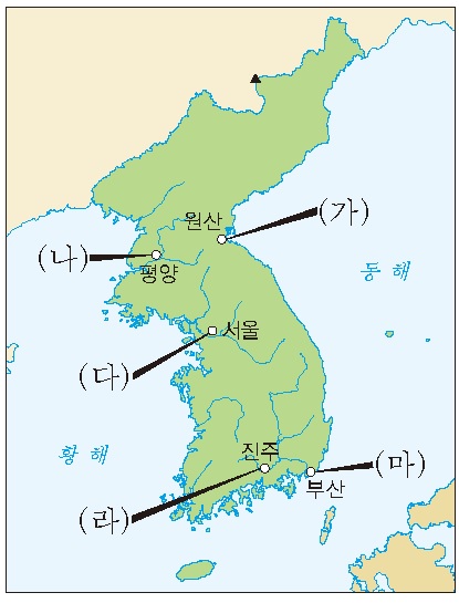 44. (가)~(마) 지역에서 일어난 사실로 옳지 않은 것은? [3점]