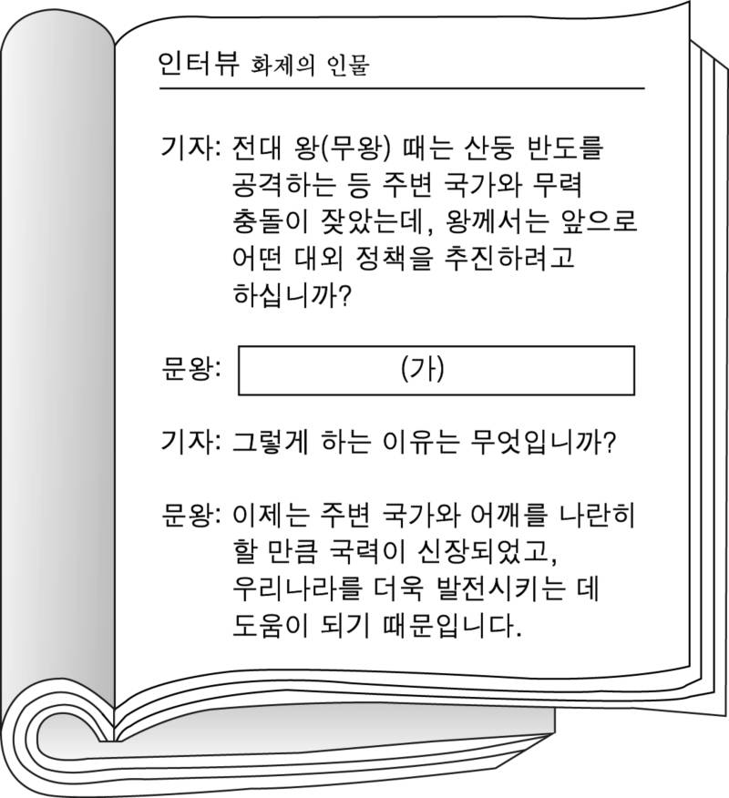 ㄴ. 당과 친선 관계를 맺을 것입니다. ㄷ. 신라와 상설 교통로를 개설할 것입니다. ㄹ. 당항성을 무역 거점으로 삼을 것입니다. |