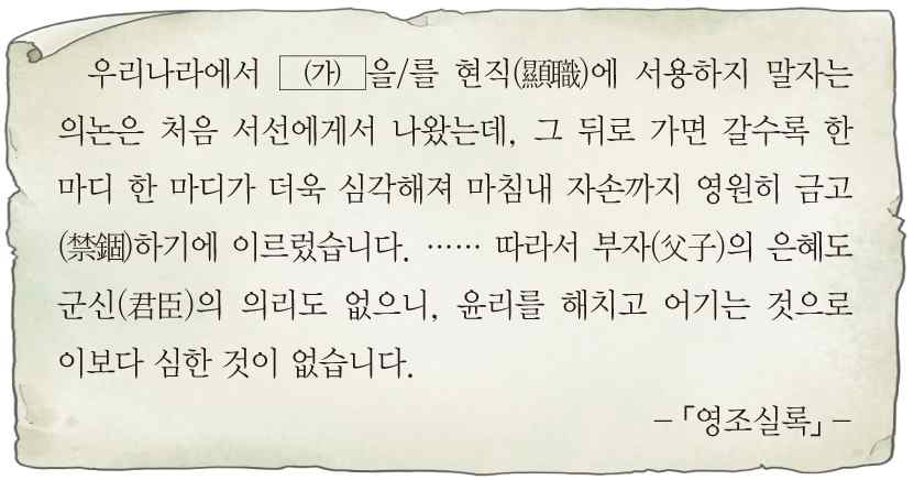 - 2015년 제26회 한국사능력검정시험(한능검) 고급 33번 문제 정답 – 서얼
