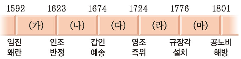 28. 다음 대화에 나타난 사건이 일어난 시기를 연표에서 옳게 고른 것은? [2점]