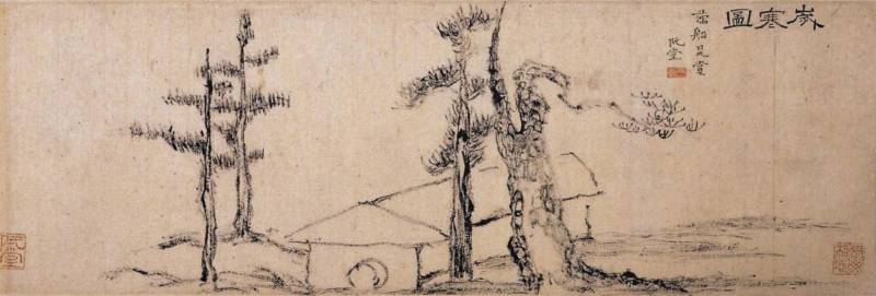 추사가 제주도에서 유배 생활을 하고 있던 중 제자 이상적이 청에서 귀한 책들을 구해다 준 것에 대한 답례로 그려준 작품이다. |