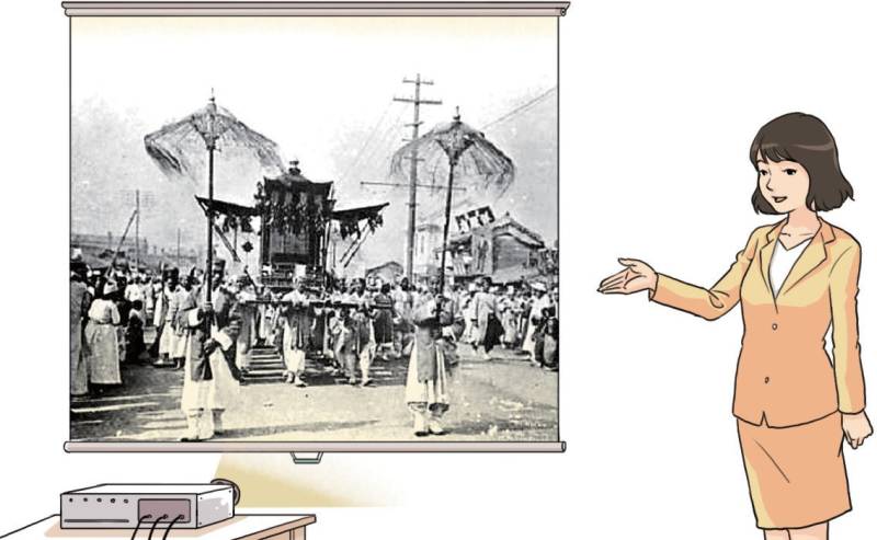 선생님: 사진은 고종의 인산(因山) 행렬 모습입니다. 손병희 등 종교계 인사들과 학생 대표들은 고종의 인산일을 즈음하여 많은 군중이 모일 것으로 예상하고 대규모 만세 운동을 추진하였습니다. |