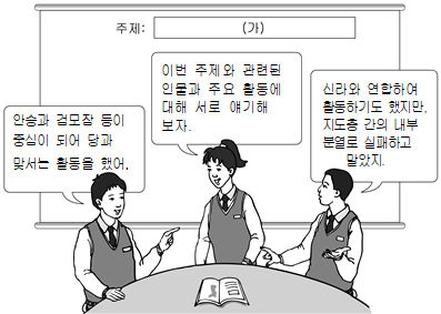 5. 다음은 역사 동아리 학생들의 모둠 학습 장면이다. (가)에 들어갈 내용으로 가장 적절한 것은? [3점]