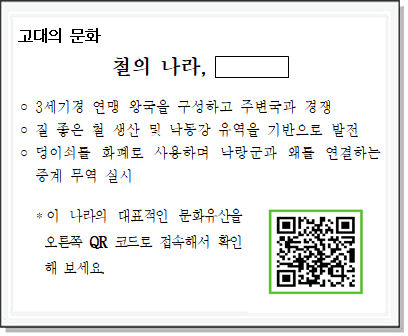 6. 다음 자료의 QR 코드로 접속했을 때 볼 수 있는 유물 사진으로 적절한 것은? [3점]