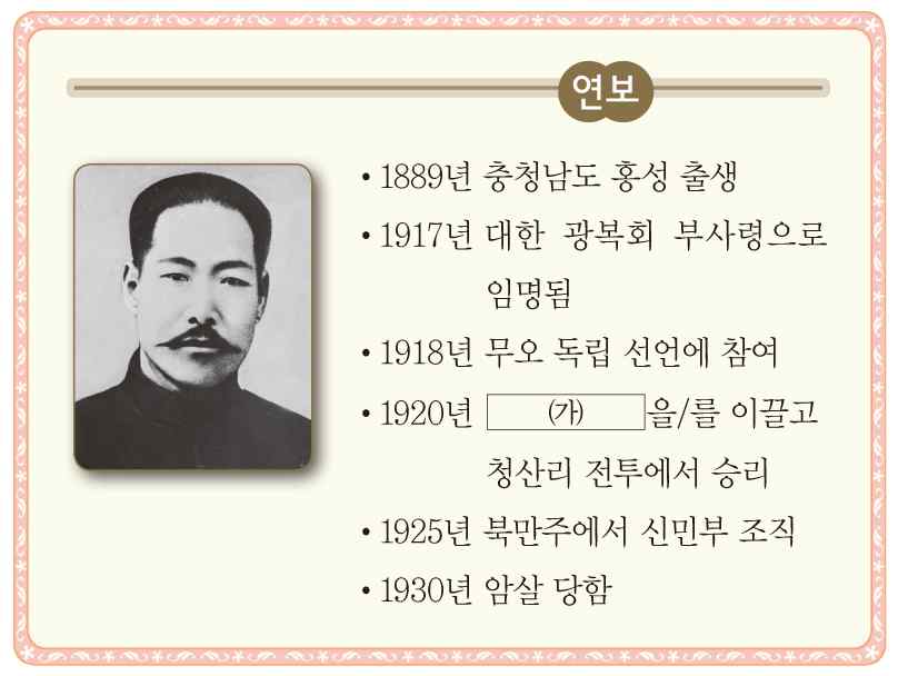 - 2015 제26회 한국사능력검정시험(한능검) 중급 45번 문제 정답 – 김좌진