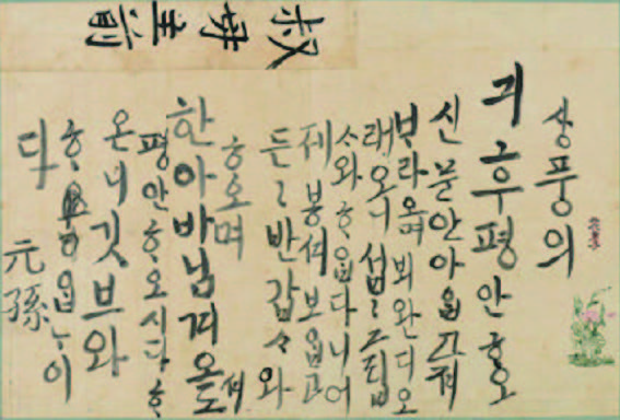 선생님: 이 편지는 이 왕이 원손 시절 외숙모에게 보낸 안부 편지입니다. 그는 아버지인 사도 세자의 무덤을 수원으로 옮기고 화성을 건설하였습니다. |