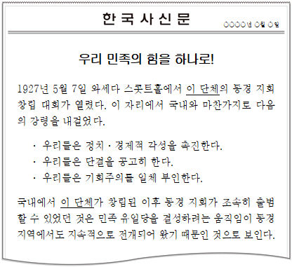 - 2016학년도 4월 고3 학평 한국사 20번 기출문제 – 신간회