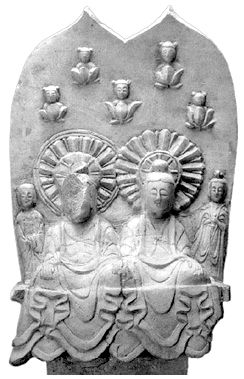 두 여래가 나란히 앉아있는 왼쪽의 ‘이불병좌상’은 이 나라의 수도였던 동경 성터(현재 중국 지린 성)에서 발견되었다. 이 불상은 석가여래가 법화경을 설법할 때, 다보여래가 나타나서 그 설법이 진리임을 증명해 주었다는 이야기를 담고 있다. |