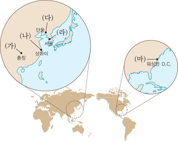 39. (가)~(마) 지역에서 전개된 대한민국 임시 정부의 활동으로 옳은 것은? [3점]
