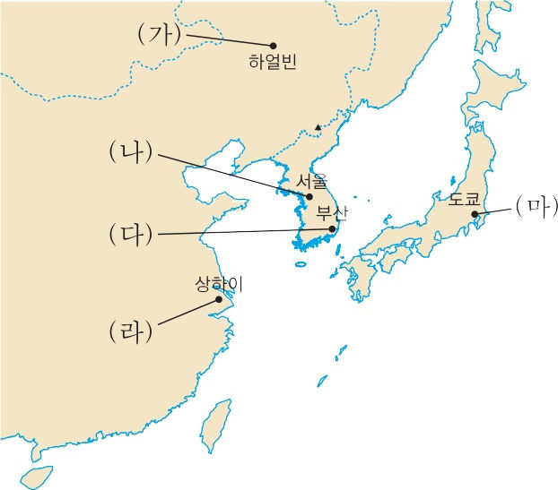 43. (가)~(마) 지역에서 있었던 의거 활동으로 옳은 것은? [3점]