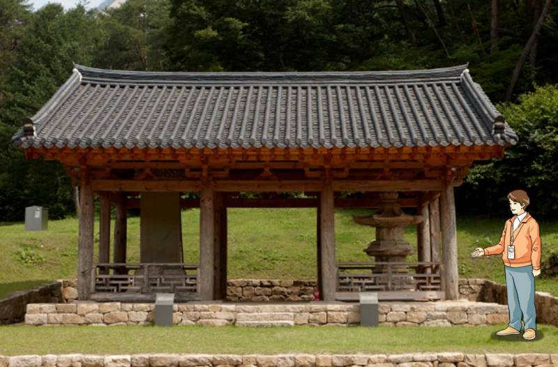 선생님: 이것은 9산 선문의 하나인 희양산문을 개창한 지증 대사의 탑비와 승탑입니다. 비문에는 ‘도의가 당에서 돌아와 처음으로 선(禪)을 말하였고, 뒤를 이어 도윤, 범일, 무염 등이 당에서 선(禪)을 배우고 돌아왔다.’는 기록이 있어 신라 하대 이 종파의 수용 과정을 알 수 있습니다. |