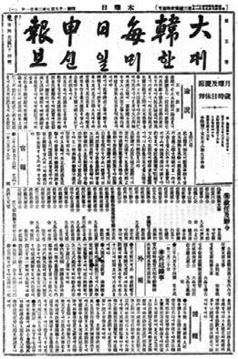 사진은 서울 양화진 외국인 선교사 묘원에 위치한 영국인 베델의 묘비이다. 베델은 양기탁과 함께 이 신문을 창간하여 일제의 국권 침탈을 비판하고, 국채 보상 운동을 전국으로 확산시키는 데 기여하였다. |