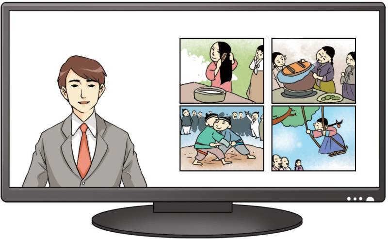 아나운서: 음력 5월 5일은 일명 수릿날이라고도 불립니다. 이날에는 창포물에 머리를 감거나 수리취떡을 만들어 먹었으며, 씨름을 하고 그네를 타기도 하였습니다. |
