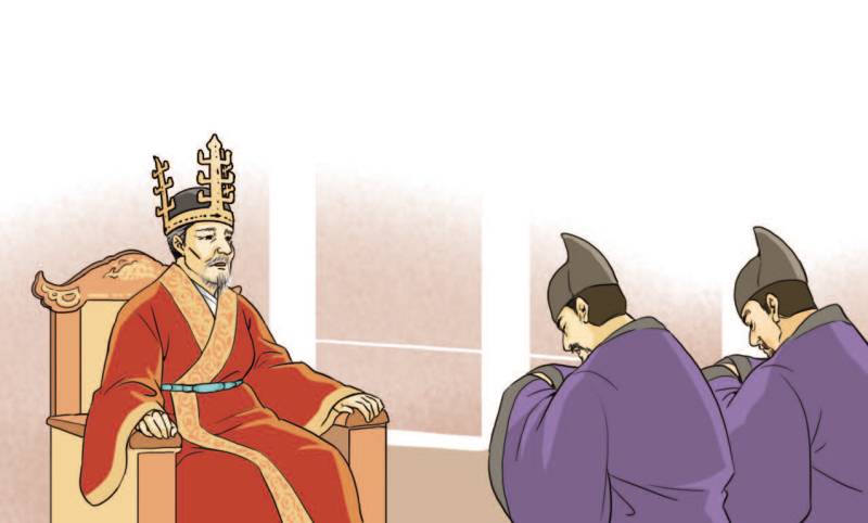 왕: 이사부로 하여금 우산국을 정벌하도록 하라. 신하: 예, 분부대로 하겠습니다. |