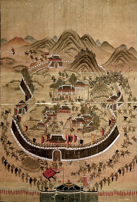 선생님: 이 그림은 임진왜란 때 이 성에서 벌어진 전투 모습입니다. 부사 송상현과 조선군, 백성들이 일본군에 맞서 힘껏 싸우는 모습이 표현되어 있습니다. |