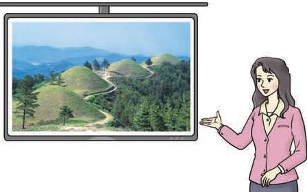 선생님: 이사진은 고령 지산동 고분군의 모습입니다. 이곳에서는 철제 판갑옷 등 이 나라의 다양한 유물들이 출토되었습니다. |