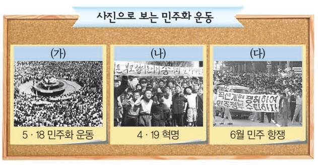 - 2016 제31회 한국사능력검정시험(한능검) 초급 38번 기출문제 – 5.18 민주화 운동, 4.19 혁명, 6월 민주 항쟁