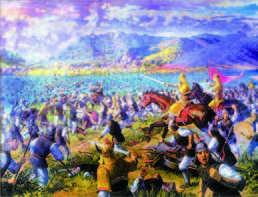 수의 우중문이 이끄는 30만 별동대가 평양성을 향해 진격하자, 고구려 장군 을지문덕은 유인 전술을 폈다. 더 이상의 진격이 어려워진 수 군대가 퇴각하며 강을 건널 때, 고구려군이 공격하여 대승을 거두었다. |