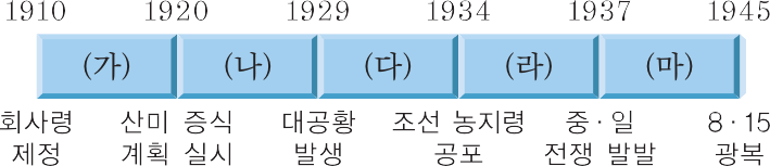 40. 다음 자료에 나타난 일제의 정책이 시행된 시기를 연표에서 옳게 고른 것은? [2점]