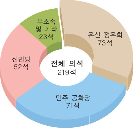 제9대 국회 개원 당시 정당별 국회 의원 분포 |