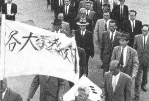 이 사진은 1960년 (가)의 전개 과정에 있었던 대학교수들의 시위 모습이다. 대학교수들은 마산, 서울 등에서 일어난 학생들의 저항을 ‘부정과 불의에 항거하는 민족 정기의 표현’이라고 규정하였다. …(중략)… 이후 내각 책임제 개헌이이루어졌고 장면 내각이 수립되었다. |