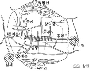 【문17】 다음 지도와 같은 상권이 형성되었던 당시에 볼 수 있는 모습으로 가장 적절하지 않은 것은?