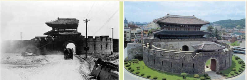 내 고장 문화유산 알기 6.25 전쟁으로 파괴된 수원 장안문을 원래의 모습으로 복원할 수 있었던 것은 설계도와 축조 과정이 상세히 기록되어 있는 |