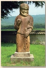 이 석상은 원성왕릉 앞에 세워진 무인상이다. 부리부리한 눈이나 이국적인 얼굴 윤곽과 복식은 흥덕왕릉 앞에 있는 무인상과 더불어 서역인의 모습을 하고 있다. 이는 당시 (가)이/가 아라비아 등 서역과 활발하게 교류하였다는 주장을 뒷받침해 준다. |