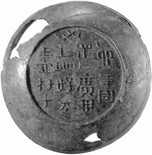 경주의 호우총에서 발견된 청동 그릇이다. 밑바닥에‘을묘년국강상광개토지호태왕’이라는 글씨가 새겨져 있다. 이를 통해 5세기경 (가)와/과 (나)의 관계를 짐작할 수 있다. |