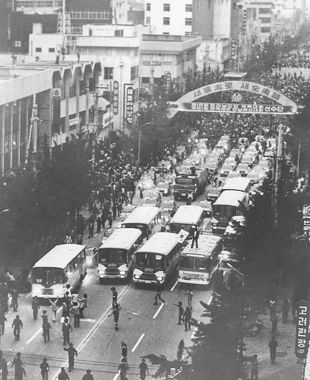 계엄군의 과잉 진압에 대항하여 많은 차량들이 전조등을 켜고 시위하는 모습 (5월 20일) |