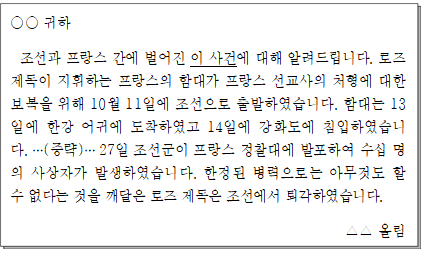 - 2018학년도 11월 고1 학평 한국사 14번 기출문제 – 병인양요