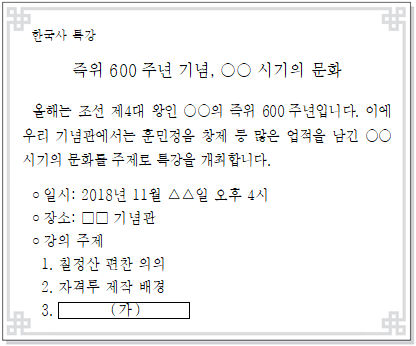 - 2018학년도 11월 고2 학평 한국사 3번 기출문제 – 조선 세종
