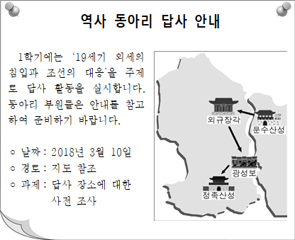 ㄴ. 병인박해에 대한 프랑스의 반응을 살펴본다. ㄷ. 미군에 맞선 어재연 부대의 항전을 알아본다. ㄹ. 러시아 견제를 구실로 영국이 점령한 섬을 찾아본다. |